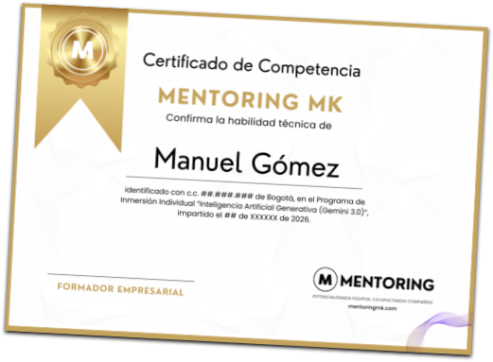 - Al finalizar la sesión, recibirás una Certificación Digital de Competencia que avala tu capacidad técnica para operar Gemini en entornos de alta exigencia.
